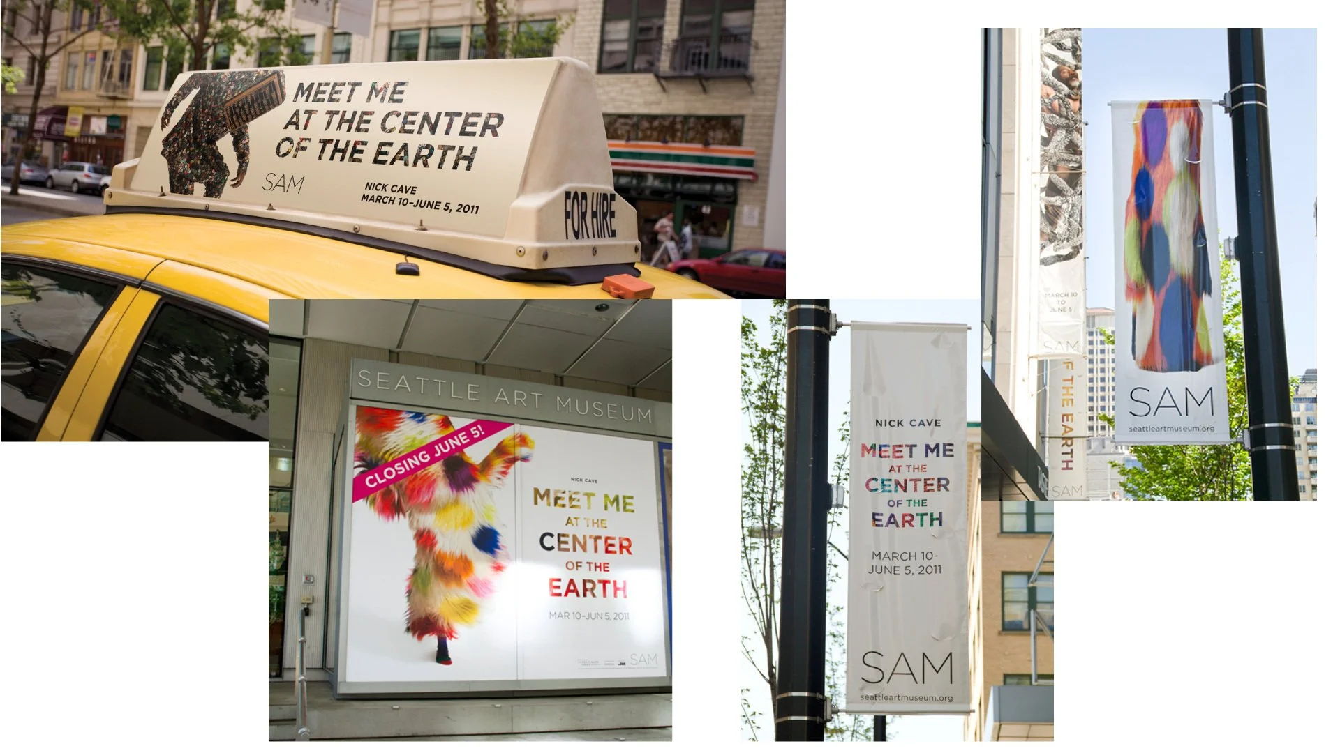 Our campaigns helped drive increased attendance across major exhibitions and positioned the Seattle Art Museum at the forefront of design among cultural institutions. The marketing materials received multiple publication and design awards, earning recognition for their creativity and impact. Visually, the campaigns extended far beyond the museum—appearing on buses, taxis, and street corners—cementing SAM as both a cultural and design destination within Seattle.