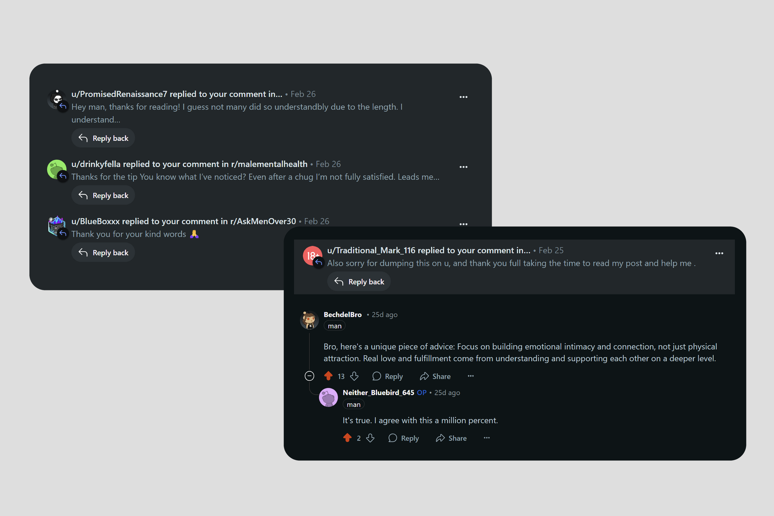 Platform-first thinking: Designed to live in Reddit comments, where men already post vulnerably